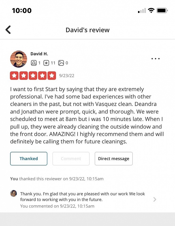 1. Deandra Vasquez is the Owner of Vasquez Clean Clean. She started this cleaning business in 2017 when it was originally called Deandra Clean Clean. After taking a year and a half off she renamed the business. With over 15 year experience and working with other cleaning companies she has set her sights on becoming the number one cleaning company in the area.